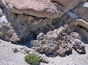 | Ikaite deposits at Laguna de Tara. Photo: Jay Quade |