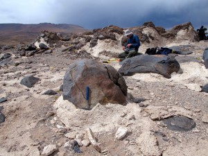 Story Image: Investigating tufa deposits at Laguna Tuyaito, Central Andes, northern Chile - Photo Credit: Kim Huppert.